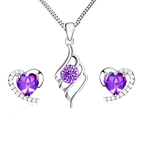 Set di orecchini da donna con strass a forma di diamante Tianyu Angelo Accent Ametista per collana + ciondolo, Ametista