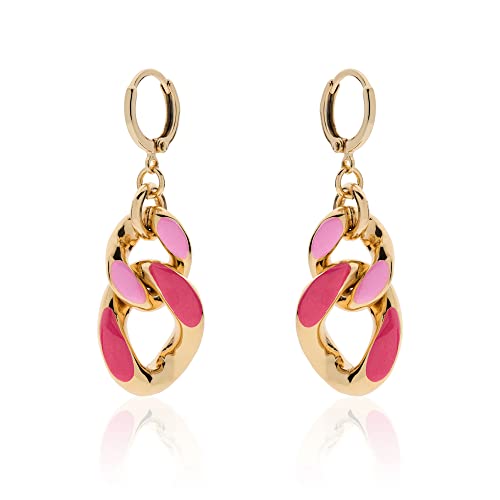 Orecchini da donna Unoaerre in bronzo dorato con smalto rosa e fucsia, della collezione Colors.