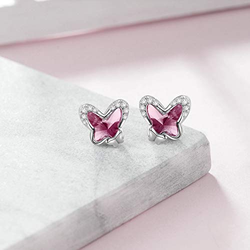 Orecchini a farfalla Bambini Argento Sterling 925 Ragazze Orecchini con Cristalli, Gioielli Regali di Compleanno per le Donne Sua Figlia (Rosa)