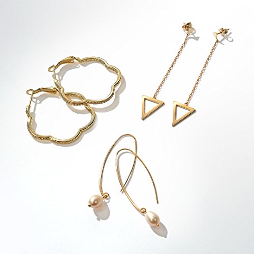 Orecchini filiere in filo di perla coltivato in acqua dolce bianca minimalista per le donne 14K placcato oro 925 argento sterling