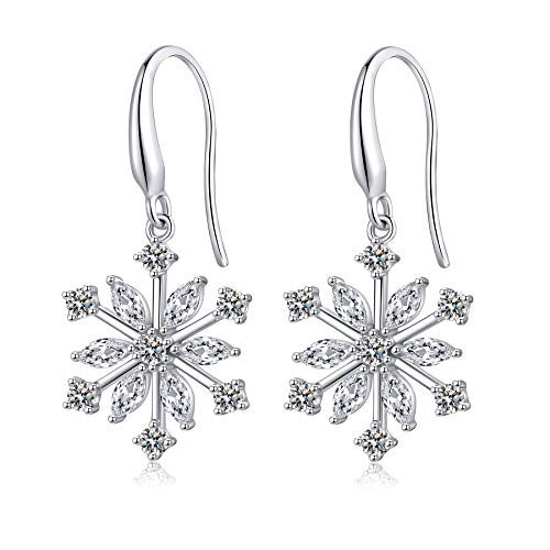 Orecchini fiocco di neve per donna ragazze in argento Sterling, Donna Orecchini Pendenti di fiocco di neve con diamante bianco Orecchini di neve goccia argent 925 orecchini di natale regalo d'inverno