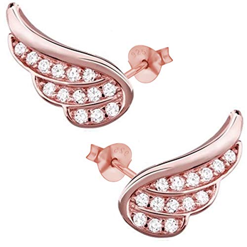Orecchini a forma di ali d'angelo, in argento Sterling 925, con micro pavé di zirconi, idea regalo per donne e ragazze, Oro rosa, zirconia cubica,