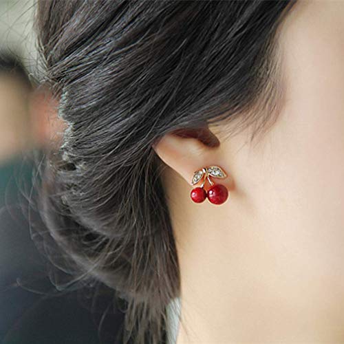 N/U - Orecchini a forma di ciliegia rossa con strass, di ottima qualità