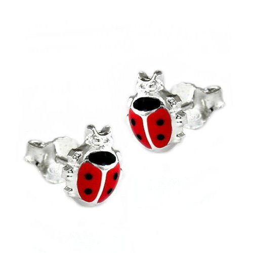 Orecchini a forma di coccinella, in argento 925, per bambini, 8 x 7 mm, con scatola per gioielli