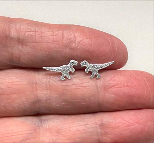 Orecchini a forma di dinosauro T-Rex con glitter, in argento Sterling