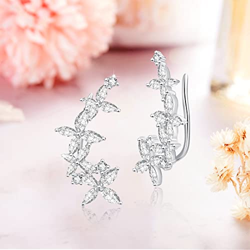 ❤ 【Design elegante di lusso contemporaneo】 Il classico design a farfalla crea una nuova bellezza artistica su di te e non passa mai di moda. I nostri polsini per le orecchie sono la tendenza della moda contemporanea, la farfalla lucida è un simbolo di felicità e amore, che può farti ispirare, incantare e aspirare a. Orecchini a forma di farfalla in argento con zirconi bianchi scintillanti intarsiati, possono evidenziare il tuo aspetto, afferrare tutti occhi nella tua festa.