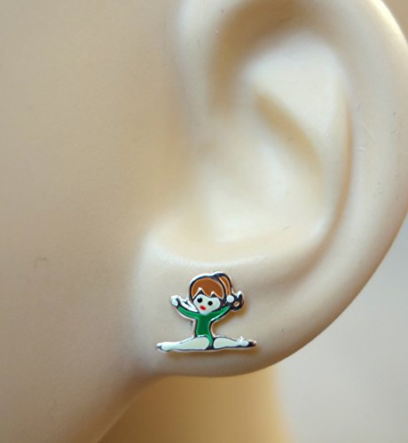 Orecchini, a forma di ginnasta con body verde - in vero argento Sterling
