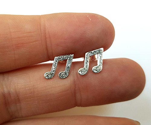 Orecchini, a forma di nota musicale, in argento Sterling, glitterati