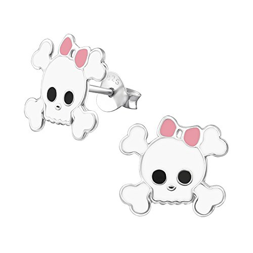 Orecchini a forma di teschio con fiocco rosa, in argento Sterling 925, Argento sterling Acciaio inossidabile Argento