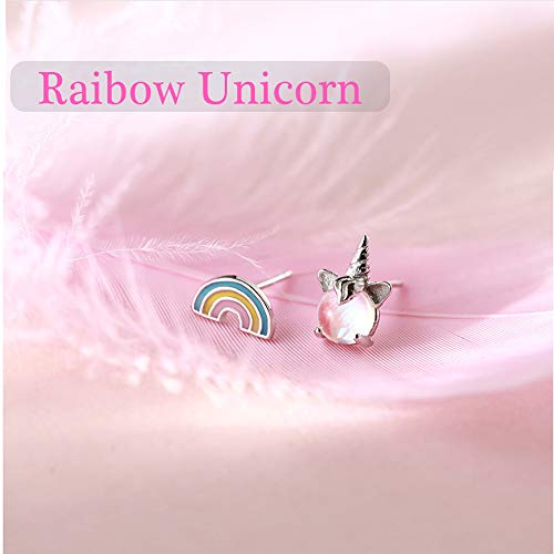 Orecchini a Forma di Unicorno Arcobaleno orecchino Argento Chiaro Rosa Scintillante per Bambine Gioielli per Bambini Festa di Compleanno con Scatola Regalo in Velluto (Orecchini)