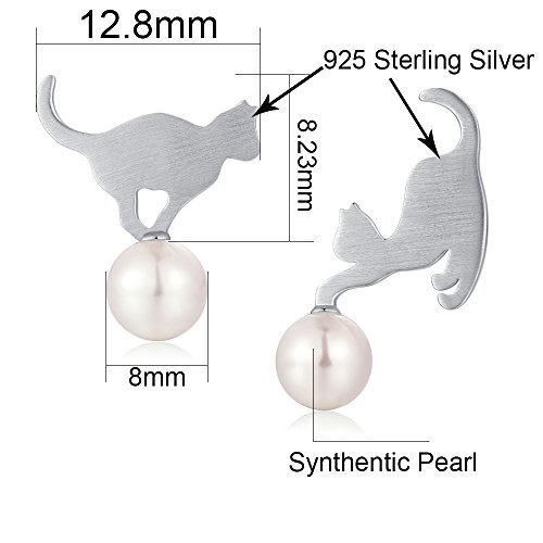 Orecchini Gatto,Orecchini Donna Gatto Miaofu Argento Gatto Orecchini Carino Perle Gatto Orecchini,Naturale d'Acqua Dolce Perle Gatto Orecchini,Orecchini Gatto Bambina,Orecchini Gatto Argento Nero