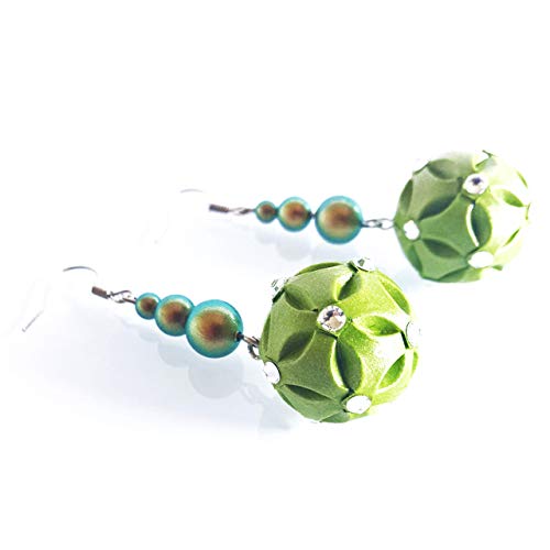 Orecchini gioielli di carta impreziositi con cristalli di alta qualità - idea regalo per lei - Fatti a mano - Colore Verde