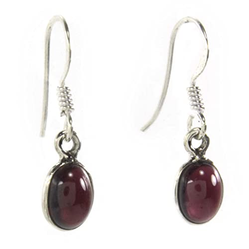 Orecchini con granato in argento massiccio 925, dimensioni delle pietre 6 x 8 mm