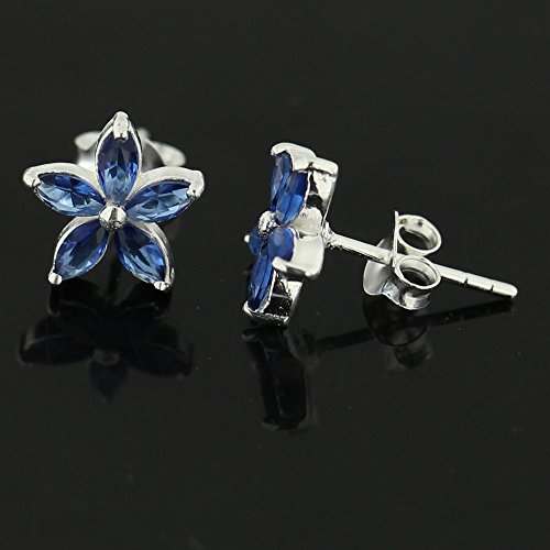 Orecchini a lobo in argento Sterling 925 a forma di margherita e Argento, colore: Blu scuro, cod. EBP-MP-AR069DB