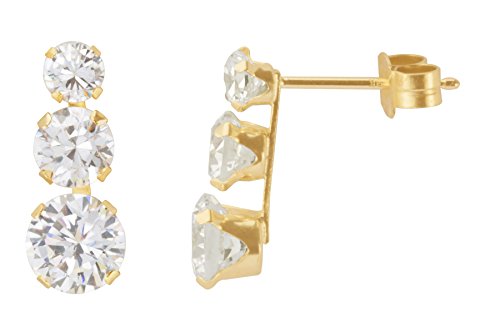 Orecchini a lobo in oro giallo 9 kt, con zirconia cubica tripla, confezione regalo
