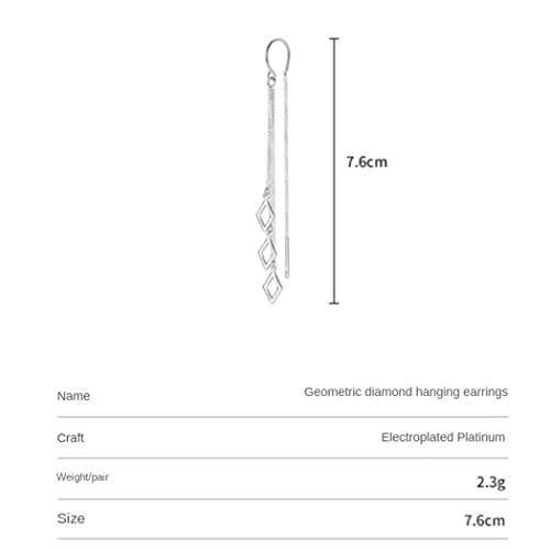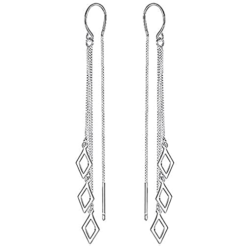 Orecchini pendenti da donna in argento 925 - con lunga nappa a forma di rombo, orecchini lunghi da festa da donna, leggeri e facili da indossare.