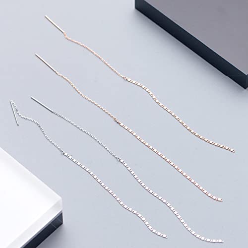 Orecchini minimalisti in argento Sterling 925 placcato oro rosa per le donne pendenti nappa lunga catena tirare attraverso orecchini 136 mm, Argento sterling