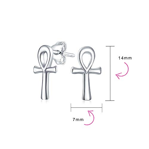 Orecchini Minimalisti Petite Delicato Simbolo Religioso Della Vita Ankh Egiziano Croce Per Donne Per Uomini Lucido .925 Argento