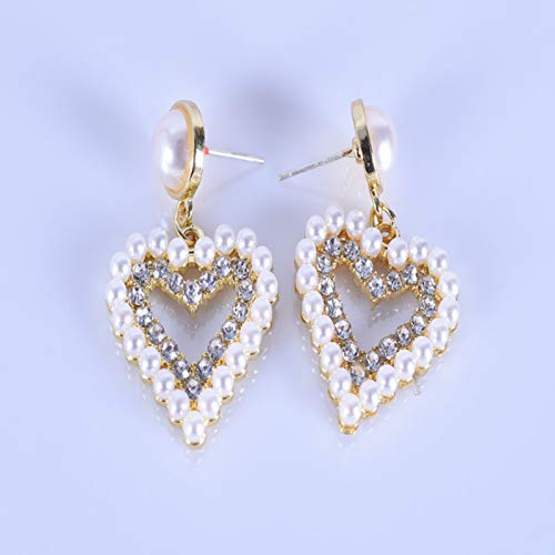 Orecchini alla moda per donne e ragazze, eleganti donne a forma di cuore con perle finte e strass, idea regalo e base metal, colore: dorato, cod. 51005526_ZHOUBAA