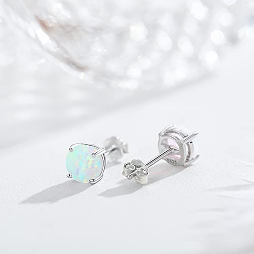 Orecchini opali da donna Orecchini opali rotondi in argento sterling 925 per ragazze Orecchini a bottone ipoallergenici per donne bambini