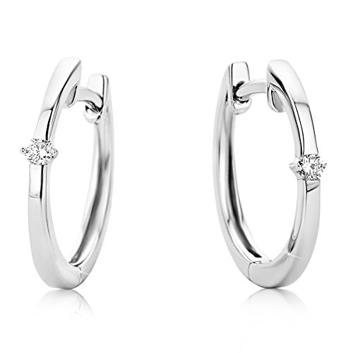 Orecchini da Donna a Cerchio in Oro Bianco, Oro Vero Gr. 1,50 9KT 375, 2 Diamanti Naturali CT.. 0,04, I processi di lavorazione artigianali della nostra gioielleria possono dare delle minime discrepanze sui pesi e nelle misure. Nelle immagini troverete le dimensioni dell'orecchino e l'effetto che ha una volta indossato.