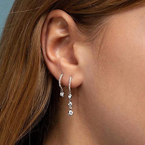 Orecchini Pendente Donna,Argento 925 Orecchini Pendenti con Zirconi Asimmetrici in Argento 925 Orecchini Ipoallergenici con Pendente A Goccia Leggera Orecchini per Donne Ragazze Festa Matrimonio Reg