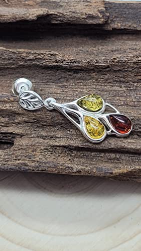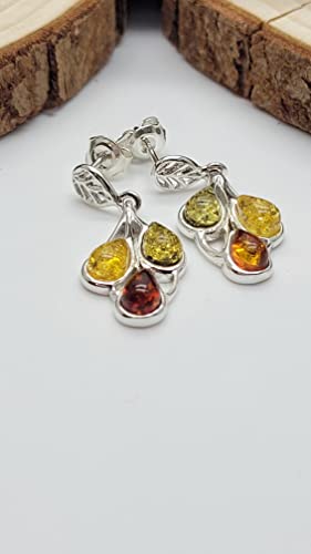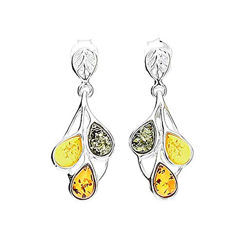 Orecchini pendenti in argento Sterling 925 con foglie di ambra mista, per donna/adolescenti/ragazze, 11 mm di larghezza x 29 mm di altezza. 070386