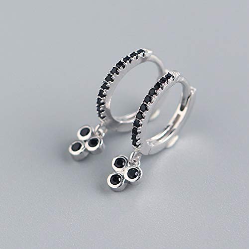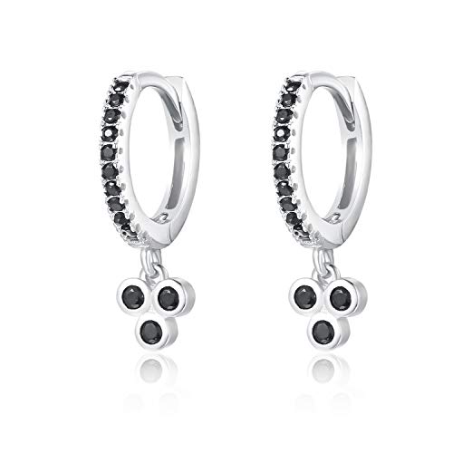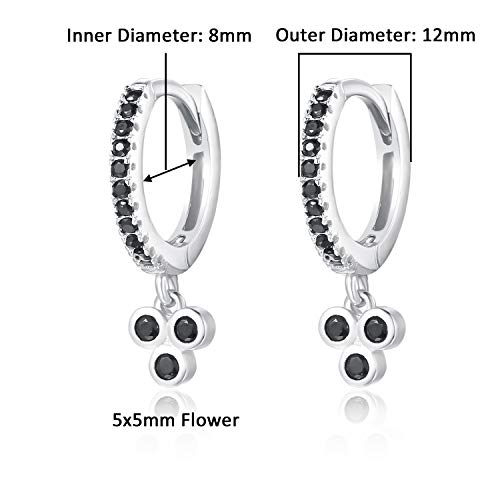 Orecchini Pendenti Cerchio Donna Argento 925 Piccoli Orecchini a Cerchio con Pendenti Zirconi Fiore Nero Anallergici