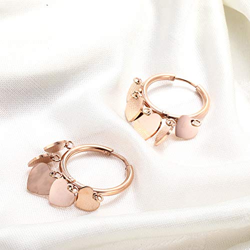 Orecchini pendenti a forma di cuore da donna, orecchini a cerchio in acciaio inossidabile ipoallergenico in argento e oro rosa con cristalli (Oro rosa)