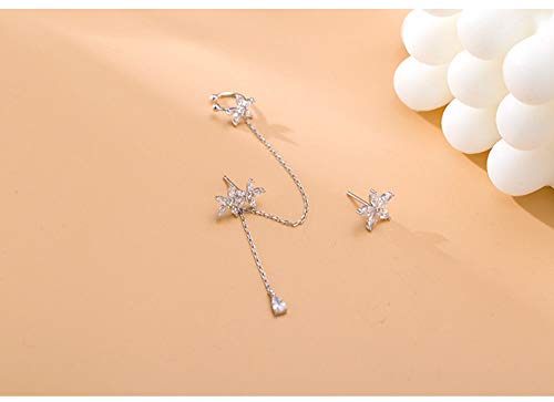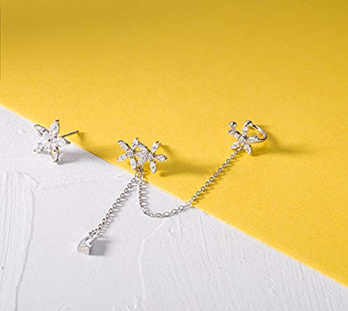 Scegli questo set di orecchini in argento sterling. Include un orecchino a perno con orecchini a forma di fiore, orecchini a catena con design a perno penzolante per altri orecchi.