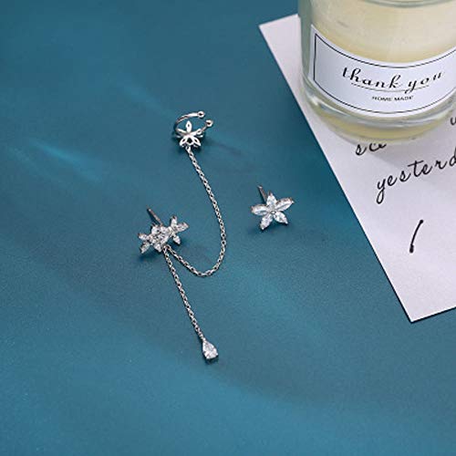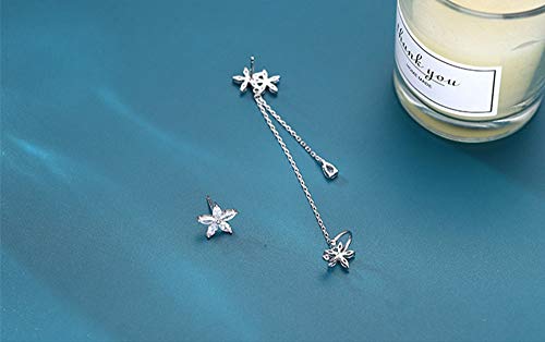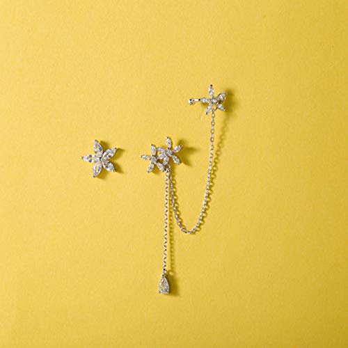 Orecchini pendenti pendenti a forma di fiore in argento Sterling S925 per donne ragazze e ragazze alla moda asimmetrica con cristalli di zirconia cubica, ciondolo a forma di nappa