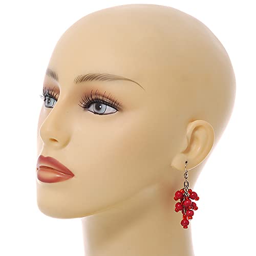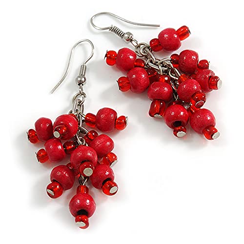 Orecchini pendenti in legno rosso (metallo argentato) - 6,5 cm di lunghezza