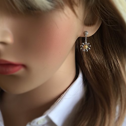 Orecchini Pendenti Margherita Argento, con Centro Placcato in Oro