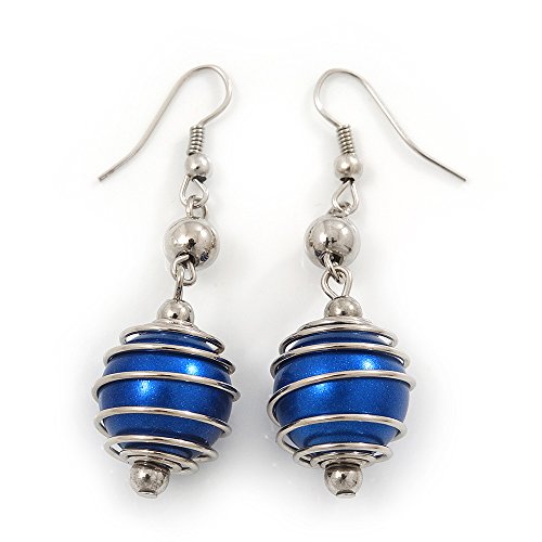 Orecchini pendenti con motivo decorativo in argento e finta perla di colore blu. Lunghezza: 5,5 cm