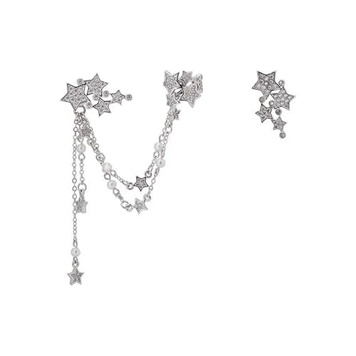 Orecchini Pendenti con Strass Orecchini con Nappe di Diamanti in 925 Argento Stella Orecchini Lunghi Orecchini Pendenti Crawler d'Orecchio Orecchini a Polsino con Nappa Long Tassel Crystal Orecchini