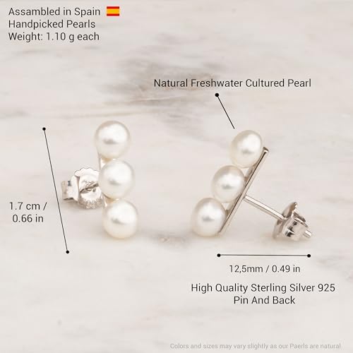 ORECCHINI FATTI DI PERLE NATURALI: Tre perle d'acqua dolce a bottone per orecchino. Le perle a bottone sono rotonde sul davanti e appiattite sul retro. Queste perle sono state selezionate e abbinate a mano per offrire una qualità superiore in termini di brillantezza, colore, forma e superficie. Vendiamo solo gioielli con perle naturali coltivate, quindi garantiamo il meglio di ogni raccolto.