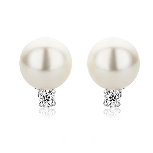 Orecchini con Perle in Vero Oro Bianco Gr.0,52 9KT 375, Perle Naturali Coltivate d'Acqua dolce 8,50 MM Zirconi Taglio Brillante. L'utilizzo di Perle Naturali possono avere delle minime differenze nelle dimensioni. Nelle immagini troverete le dimensioni e l'effetto che avrà indossato.
