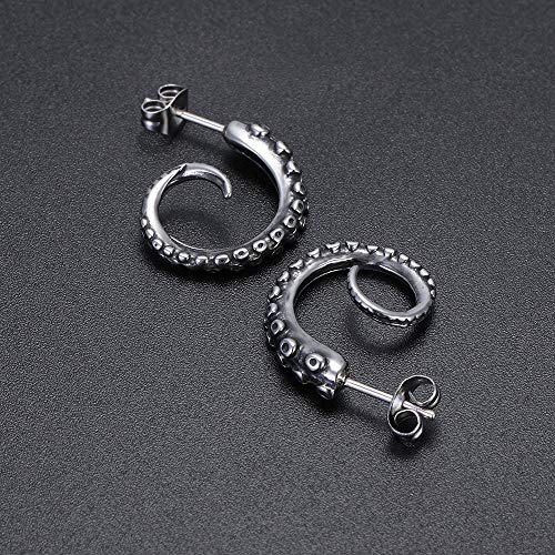 Orecchini a perno in acciaio inox, stile gotico punk, per donne e uomini, con polpo curvo, per ragazze