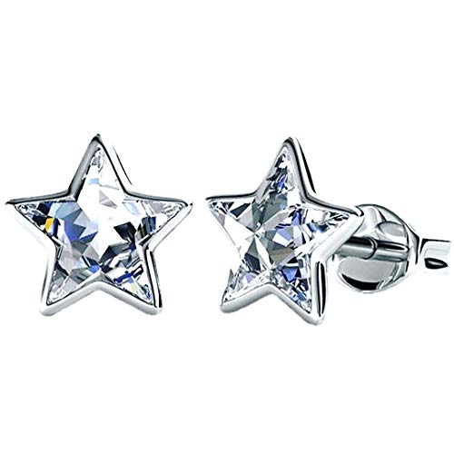 Orecchini a perno in argento, a forma di stella con cristalli Swarovski, placcati al rodio, idea regalo per donne di ogni età