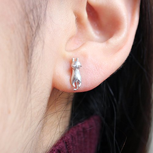 Orecchini a perno in argento Sterling 925, bigiotteria da ufficio con gattini tridimensionali, finitura opaca, ideale per gli amanti dei gatti
