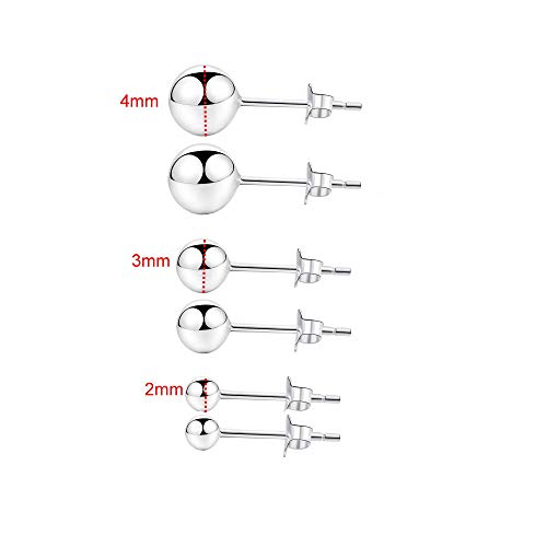 Orecchini a perno in argento Sterling S990, per donne e ragazze, 2/3/4 mm, 3 paia di piercing per cartilagine
