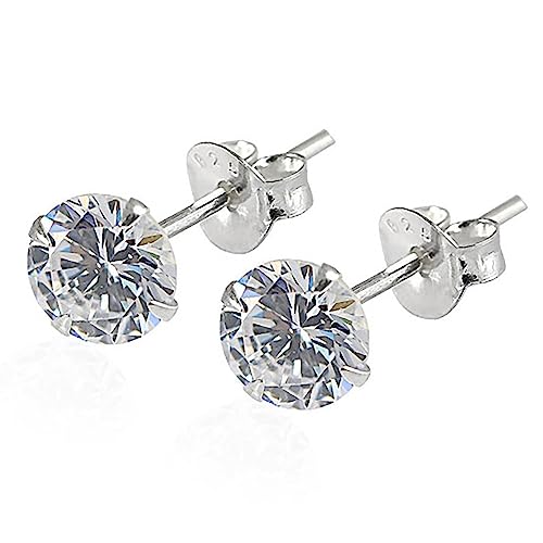 Orecchini a perno in argento Sterling 925 con zirconia cubica rotonda trasparente da 9 mm, Zirconia cubica, argento Sterling, pietra, Zirconia cubica
