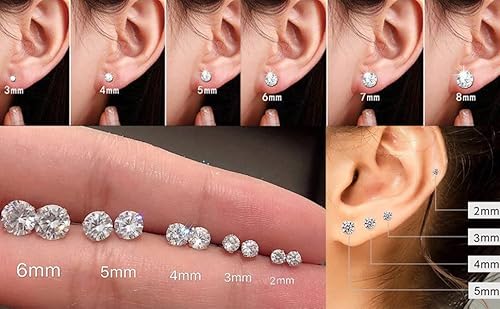 Orecchini a perno, in oro bianco 14 ct, zircone cubico dal taglio rotondo, colore: bianco e Oro bianco, colore: Silver/White