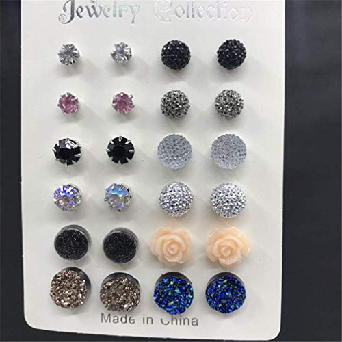 N/U - Set di orecchini a perno da donna, con sfera multipla e cristalli a forma di rosa, per vacanze estive