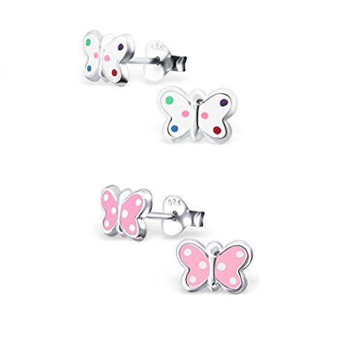 Orecchini a perno con farfalla in argento Sterling, rosa e bianco (2 paia)