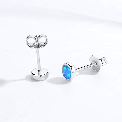 Orecchini a perno in vero argento Sterling 925 con opale sintetico, 4-8 mm, per donne e ragazze e Argento, colore: Blu 4 mm., cod. TZE156-B4
