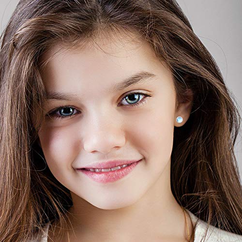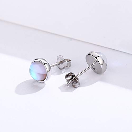 Orecchini in pietra di luna Orecchini in argento sterling 925 con pietra di luna rotondi arcobaleno per ragazze Orecchini ipoallergenici per donne bambini (A)