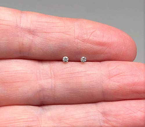 Orecchini rotondi con cristalli trasparenti in argento Sterling 925, extra piccoli, 2 mm (piccolo), Vetro, cristallo