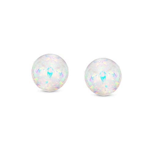 Orecchini a sfera opale arcobaleno bianco creato per le donne 925 Sterling Silver 6MM Ottobre Birthstone