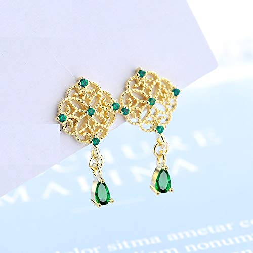 Orecchini in Stile Palazzo di Lusso Orecchini in Argento Sterling 925 con Pizzo Cinese Vuoto Orecchini con Orecchini A Goccia d'Acqua con Zirconi Verdi Smeraldo